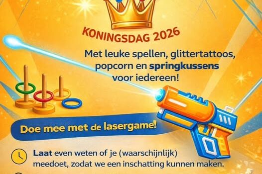 ITTERSE LASERGAME – KONINGSDAG 2026 Zin in een middag vol actie en gezelligheid? Kom lasergamen en geniet van: leuke spellen glittertattoos popcorn springkussens Voor de ouders: geniet ondertussen…